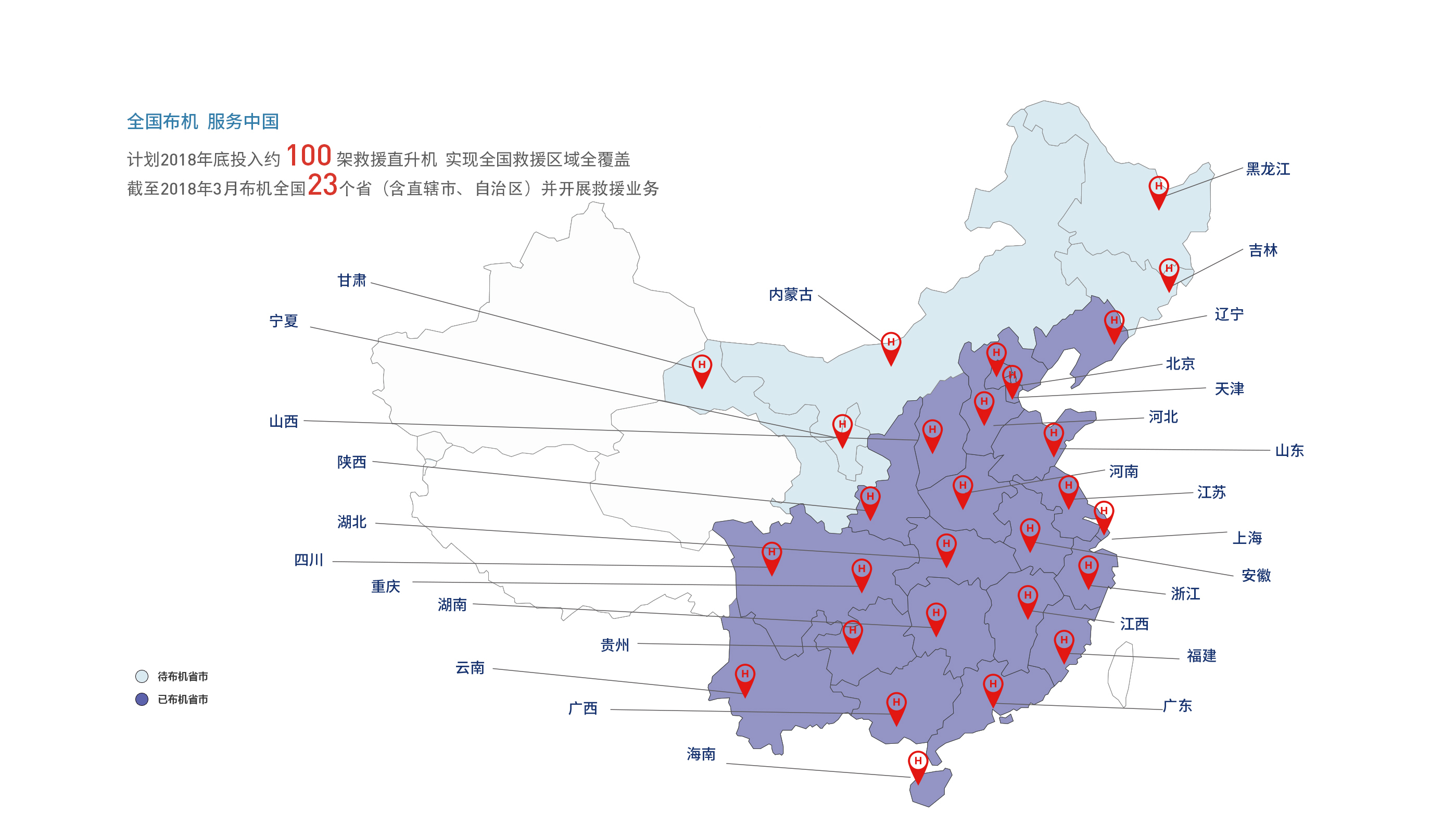 旨在以专业医疗构型的直升机作为运输载体,通过与全国院前急救单位及医院的全面合作,构建一个覆盖全国的、立体化的直升机航空医疗救援网络,为社会大众提供院前救援、院间转运等常态化的、及时响应的航空医疗救援服务。